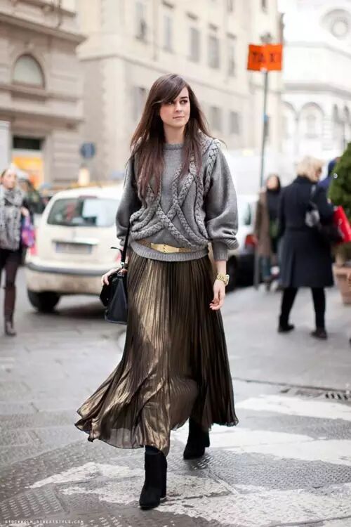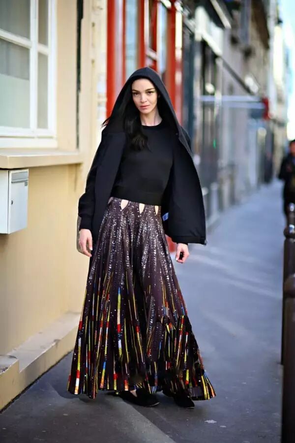 有些人可能会觉得长裙最适合高个儿女孩穿,但有时候搭配技巧的关系,也会让高个儿女孩看起来更像巨人一样。如果不想要过于强调自己的身高,想要有点帅气颓废的感觉,可以利用长裙搭配上长版落肩外套,再穿上一双牛津鞋,整个身形就会立即改变,更有一种grunge的风格。