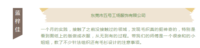 一个月的时间,很短却很长。他们还只是在校的学生,他们的服装设计知识大多还停留在课本上,他们却一起来到了大朗,住在工厂,学习毛织的工艺与设计。