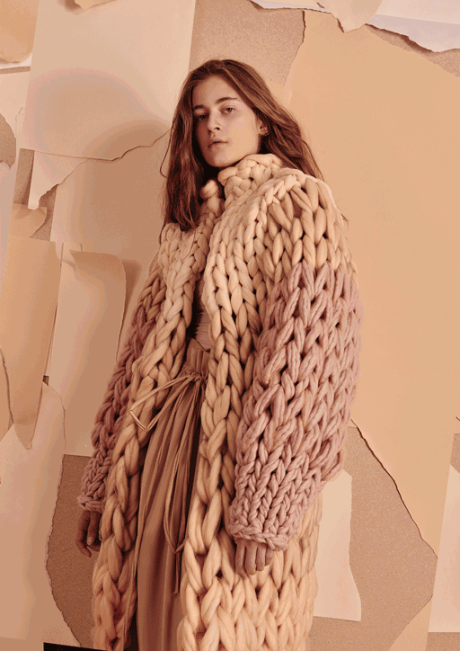 本主题主要以暖色调色彩来诠释现代女性对生活的热爱以及包容。采用电光蓝、垫肩、开叉、不对称等元素来强调女性的独立和自信;采用皮草、马海毛、狐狸绒等具有厚度感和温暖感的材质来提升秋冬季毛衫的质感。