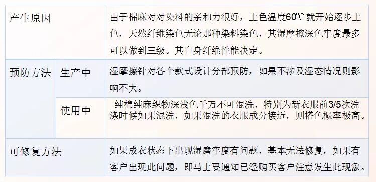 说明:面料在湿状态下,与其他织物摩擦的颜色牢度。如穿棉或麻衣服,下雨淋湿衣服,颜色混到外套或者包包里。