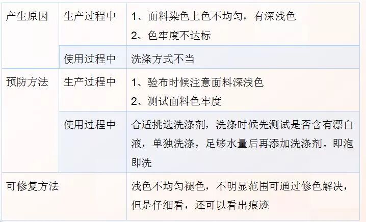 (2)面料褪色(不均匀褪色)